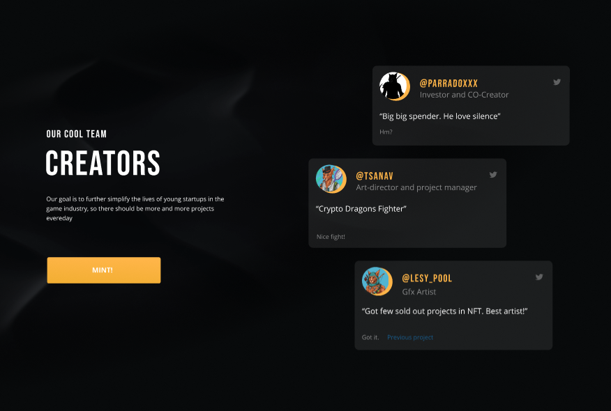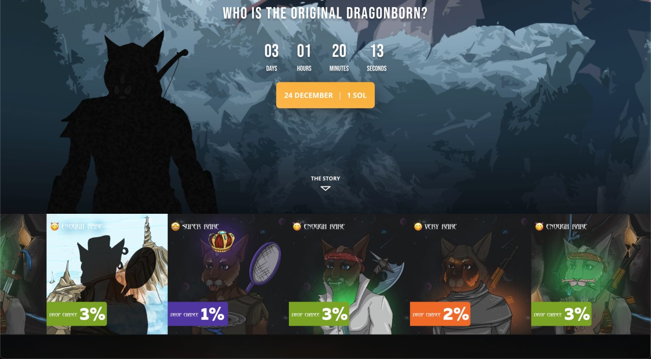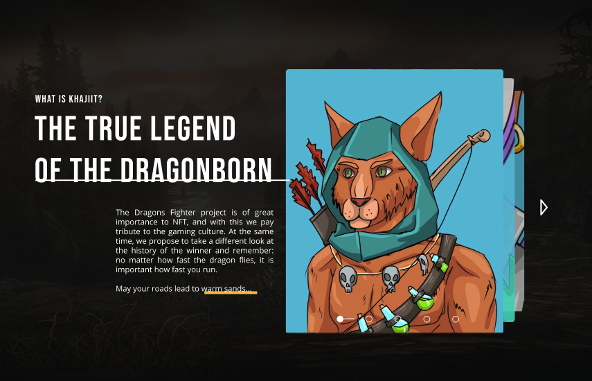 Разработать атмосферный сайт для NFT коллекции, основанной на игре TES Skyrim