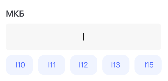 Tips for doctors when searching for diseases by name or by ICD code with auto-completion and loading of disease data.