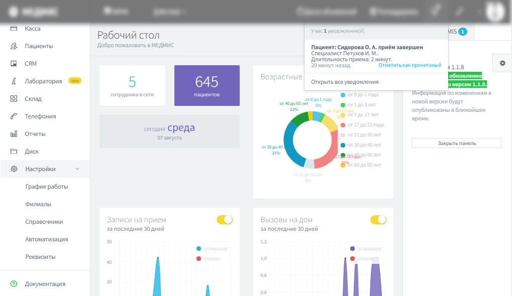 Unlike the mobile version for patients for doctors, at this stage only the desktop version is provided for work. There are plans to create a mobile chat for doctors.