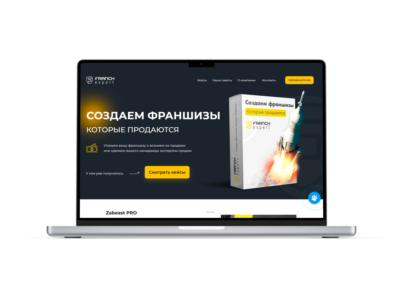 Слайдер с кейсами и ключевой информацией о проделанной работе над франшизей.