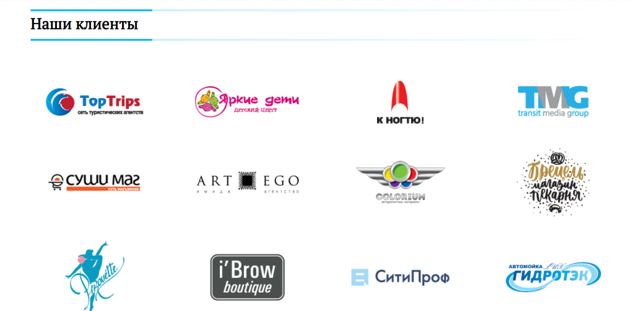 Блок с известными компаниями, с которыми успели поработать для повышения доверия и статуса.
